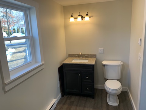 Large accessible bathroom has natural lighting and plenty of room to move around in.